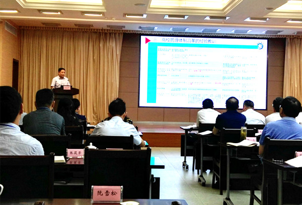 在主题发言中,柳友荣围绕“新时代中国特色现代大学制度的学理阐释与实践理路”这一主题,分别从总书记的“高瞻远嘱”、全球高等教育管理体制模式、高校管理体制沿革的经验教训、“中国特色”是最大的体制优势和“美好生活”与大学的应答等五个方面,对新时代中国特色现代大学制度进行了系统的学术分析和学理阐释。
