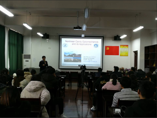 吕新友教授回顾了腔光力学的发展历程,介绍了当前国际上腔光力学领域最新的重大理论和实验研究成果,重点阐述了其个人及团队在光力系统宇称时间(PT)对称性破缺诱导的“混沌”现象,以及利用压缩效应有效提高非线性辐射压力等方面取得的重要进展。