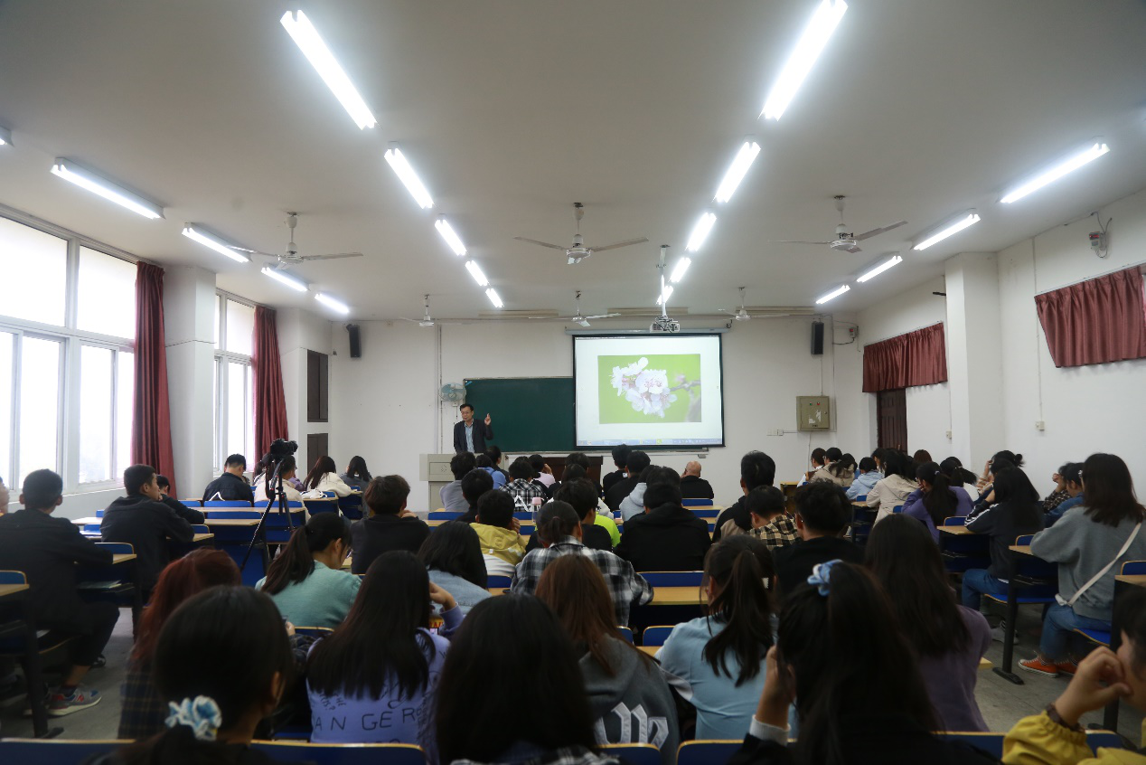 何为杏花?纪教授为新生展示了各种杏花的图片,通过对形态特征地鉴赏阐释了杏花与桃花、梅花的区别。纪教授带领学生鉴赏了从古至今历代文人墨客所作的杏花图;讲述了地理杏花村的历史渊源。当学生对杏花村有了一个大致的了解后,纪教授又引领学生探寻了杏花村的文化内涵。最后,纪教授介绍了关于杏花村的文化开发问题。