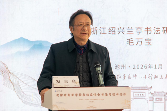 庄华峰在致辞中阐释了书法与读书的同源共生关系。他强调,书法与读书恰似一对文化双胞胎,汉字是二者共同的母体;读书是向内的文化汲取,书法是向外的气韵挥洒,二者构成双向赋能的有机整体。他寄望本次论坛能够成为一个重要契机,让书法与读书真正融入高校师生的日常,成为大家浸润心灵的优雅生活方式。