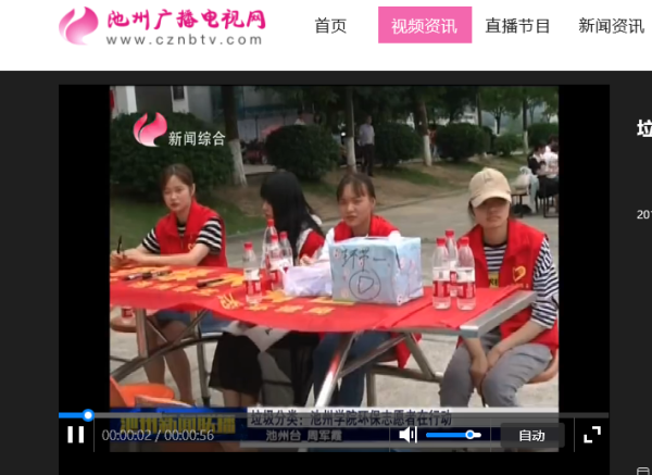 6月17日,池州新闻联播报道了beat365官网资源环境学院与池州市生态环境局联合举办的“蓝天保卫战、我是行动者”世界环境日主题系列活动。