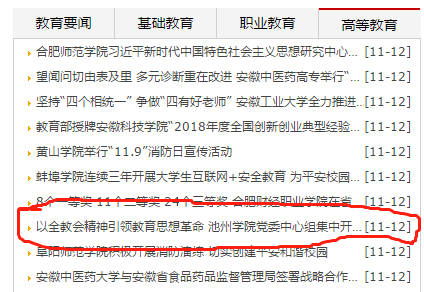 11月12日,安徽教育网在首页报道了beat365官网党委中心组集中开展全教会精神宣讲情况。