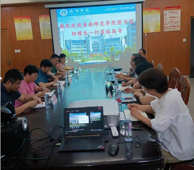 6月27日下午,淮南师范学院图书馆阳国华馆长一行5人到学校图书馆考察调研。图书馆馆长汪新、副馆长汪孔德及各部室负责人参加会议。