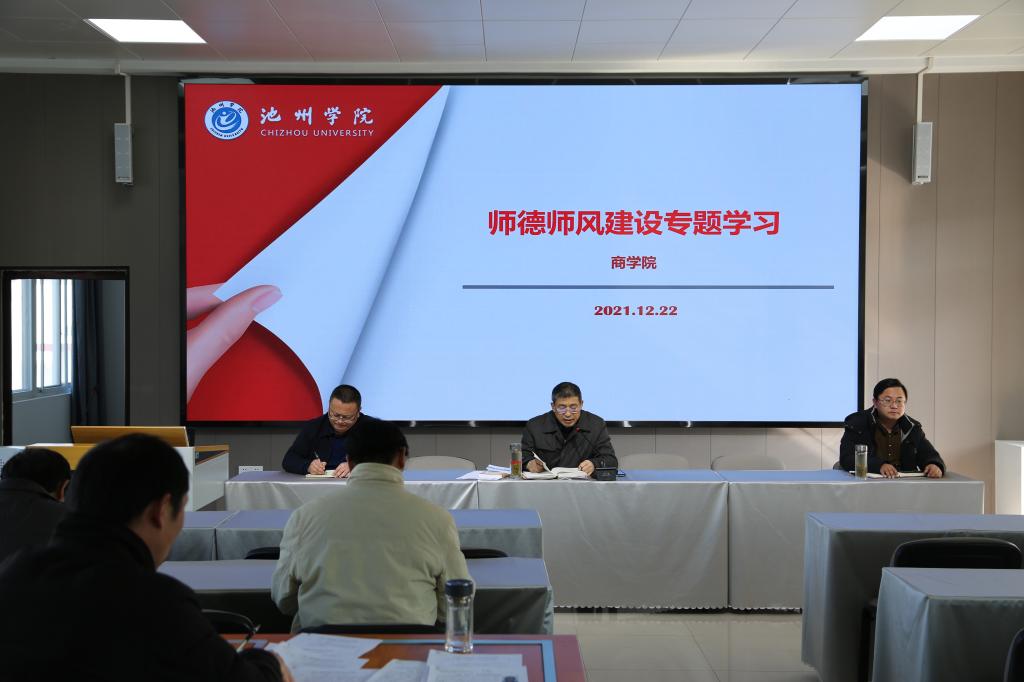 为进一步推进师德师风教育的深入开展,12月22日下午,商学院在博识北401召开师德师风教育专题学习会,学院全体教职工参加会议,会议由院党委书记罗志刚主持。