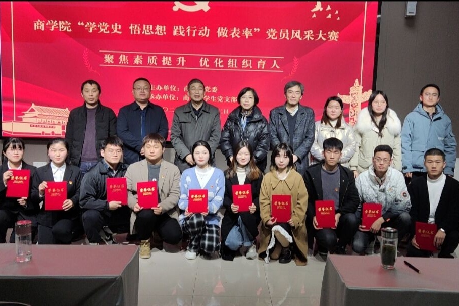 为扎实推进党史学习教育走深走实,切实发挥组织育人功效,强化学生党员的教育与管理,充分发挥学生党员的先锋模范作用,12月22日晚,商学院党委在博识北401举办了以“学党史 悟思想 践行动 做表率”为主题的大学生党员风采大赛。商学院党委书记罗志刚、院长项桂娥、副书记肖宁生、支部书记和辅导员代表等参加了此次活动,学生党员、入党积极分子代表近70人观看了比赛。