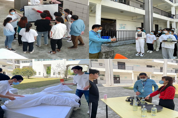 比赛设置了中式铺床、模拟中餐摆台、手持托盘和礼仪展示等多项技能,参赛人员以酒店管理专业学生为主体。比赛将酒店管理专业技能与趣味性相结合,穿插模拟酒店情景实操与专业知识问答等环节,户外露天的庭院赛场更是增添了自然的情趣。徽派的庭院、明媚的阳光、清新的空气、青春的身影、娴熟的技能、围观的师生、热烈的掌声……让封闭校园以来的沉闷在这一刻烟消云散,同学们在一张一弛中得到了锻炼,收获了成长。