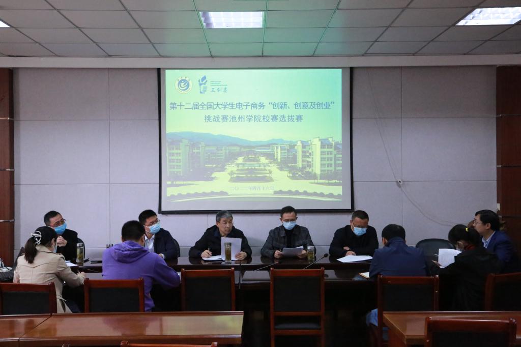 4月16日上午,商学院在博识北202、博识北301、博识北303成功举办了第十二届全国大学生电子商务“创新、创意及创业”挑战赛校级选拔赛。商学院党委书记罗志刚、教务处副处长杨荣明、商学院党委副书记肖宁生、池州市产业投资基金执行董事周峤、池州市烟草专卖局高级质量工程师舒仁伟及池州市烟草专卖局梁花等应邀到现场进行评审。