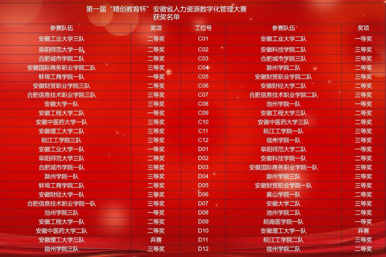 第一届“精创教育杯”安徽省人力资源数字化管理大赛于4月16号完成,本次大赛由浙江精创教育公司和安徽工业大学联合举办,省内高校包括安徽大学、安徽财经大学、安徽工业大学等19所高校,48支队伍参加比赛。商学院学子在大赛中取得佳绩。
