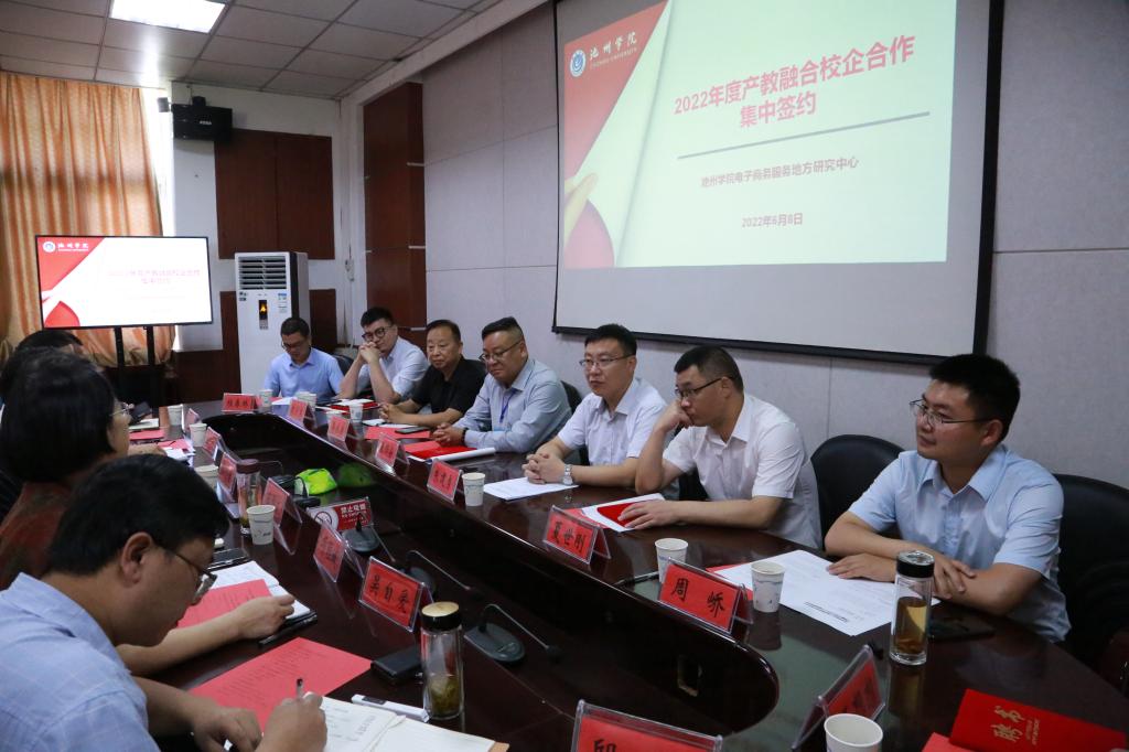 6月8日,beat365在线唯一官网登录电子商务研究中心2022年度产教融合校企合作集中签约活动在商学院会议室圆满举办。beat365在线唯一官网登录党委副书记崔国发、学生处处长洪为宝出席会议。商学院党政领导班子、电子商务服务地方研究中心成员参加会议。安徽赛芙利食品有限公司、安徽文香科技有限公司、池州市退役军人关爱中心、池州市云联影视文化传播有限公司莅临签约现场。会议由商学院副院长吴自爱主持。