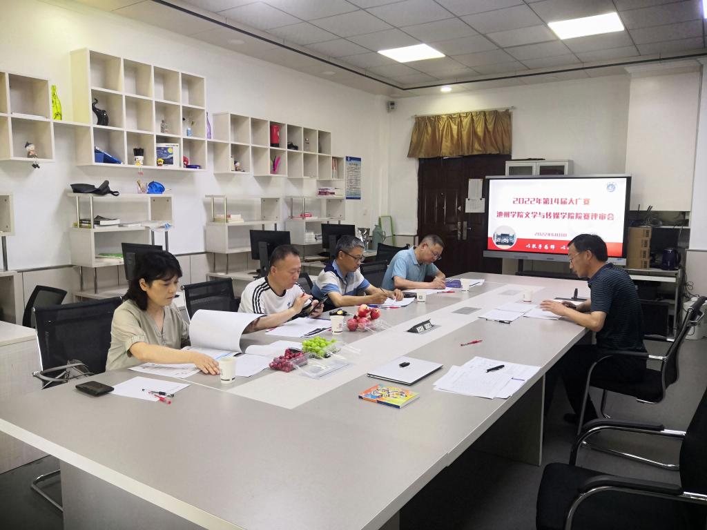 6月11日,第十四届全国大学生广告艺术大赛(以下简称:大广赛)院赛评审会在文学与传媒学院博物北二楼新媒体创客工作室顺利举行。院赛评审会邀请了池州市传媒中心创新研发部主任杨琨、新媒体编辑部主任周劲风、广播频率总监彭毅、公共频道总监江山等四位专家担任评委,会议由副院长高祥华主持。