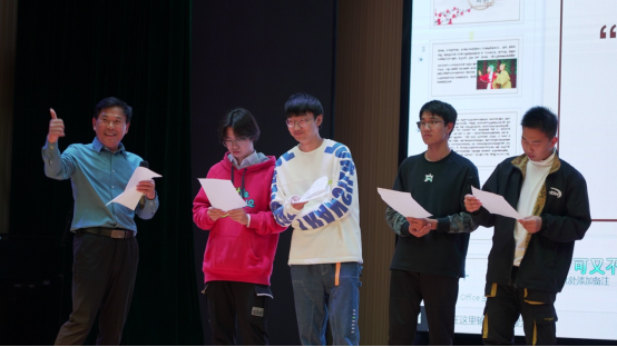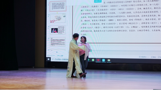 在互动教学环节,为让大学生零距离接触“青阳腔”,两位研究员邀请学生上台体验,现场教唱《我也曾梦里相见数十遍》,感受“青阳腔”的艺术魅力。