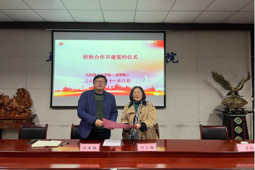 叶丰林检察长与叶三梅院长共同签订了《校检合作共建协议书》。