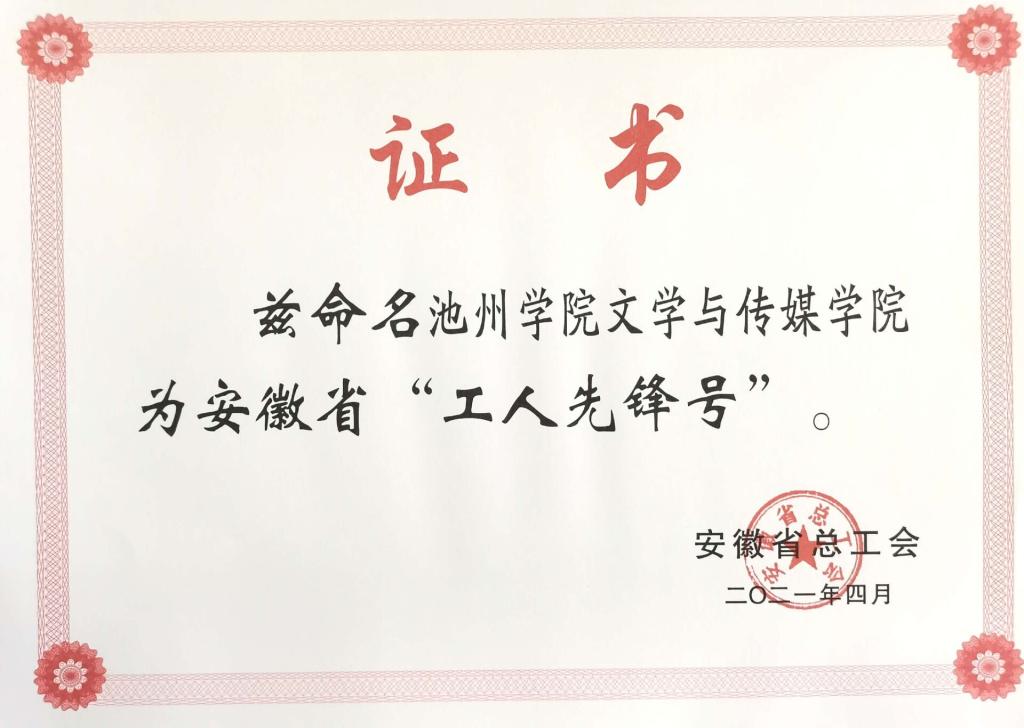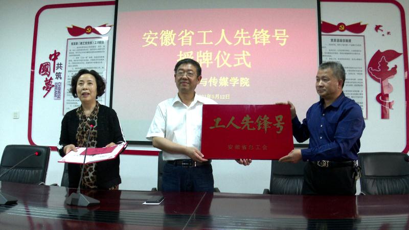 近日,安徽省总工会授予beat365官网文学与传媒学院“安徽省工人先锋号”称号,这是该院首次获得此项殊荣,是学院全体教职员工共同努力的结果。