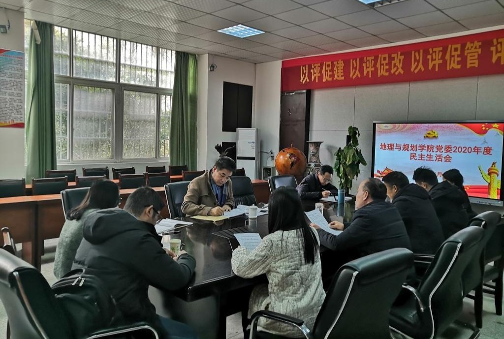 1月20日下午,beat365在线唯一官网登录地理与规划学院在博文南一楼党员活动室召开2020年度民主生活会,校长柳友荣到会指导。会议由地理与规划学院党委书记崔泽玉主持,学院领导班子成员、科级干部、支部书记以及专职辅导员参加了会议。