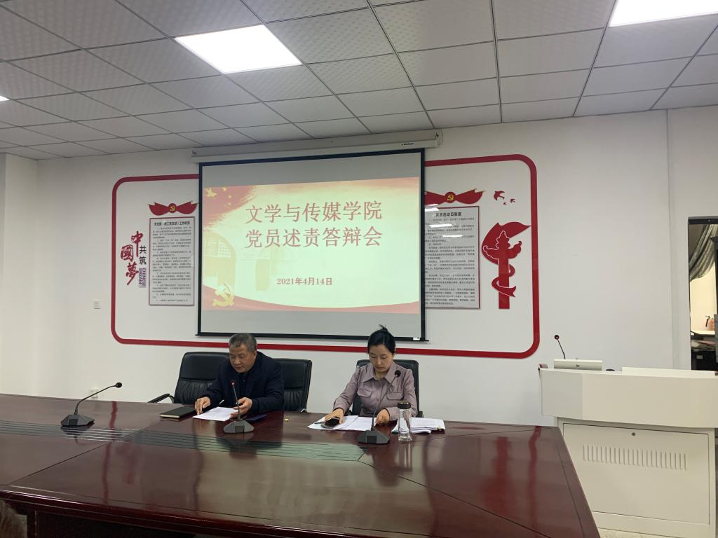 文学与传媒学院党员在述责答辩。