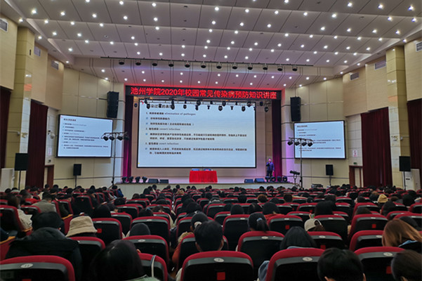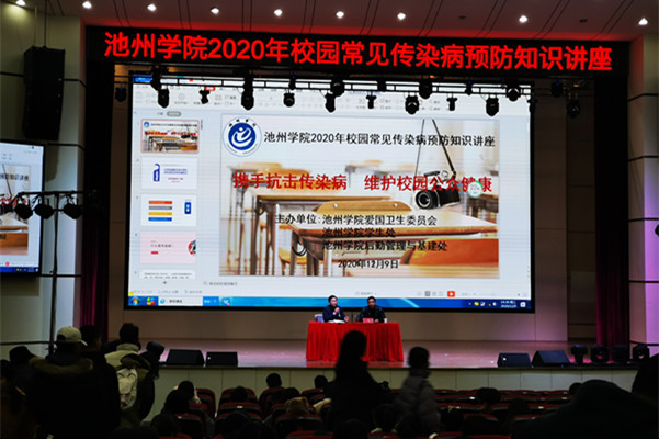 12月9日下午,由beat365在线唯一官网登录爱国卫生委员会主办,学生处、后勤管理与基建处联合承办的beat365在线唯一官网登录2020年校园常见传染病预防知识讲座在校博古楼礼堂开讲。