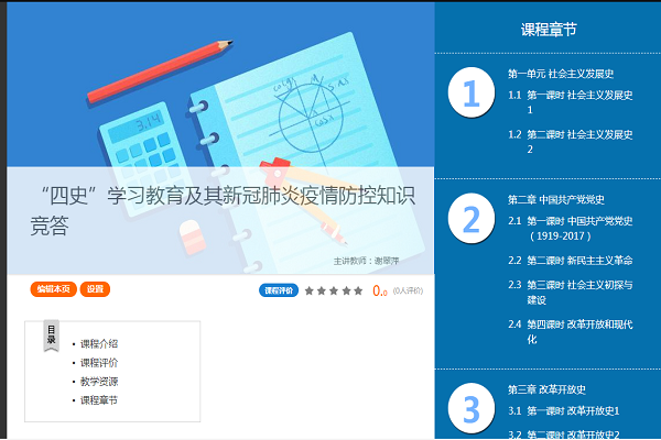 利用网络平台线上线下学习,做到四史学习教育全覆盖。充分发挥学院专业优势,于9月底成立以历史学专业学生为主体的“四史”青年理论学习小组,在院领导及专业老师指导下,开发了《“四史”学习纲要》网课,建设了“四史”知识课件、习题库和模拟考卷等学习资源。11月30日至12月15日,利用学习通网络教学平台向全院师生开启线上学习与知识检测,学生参与度高,学习成效明显。