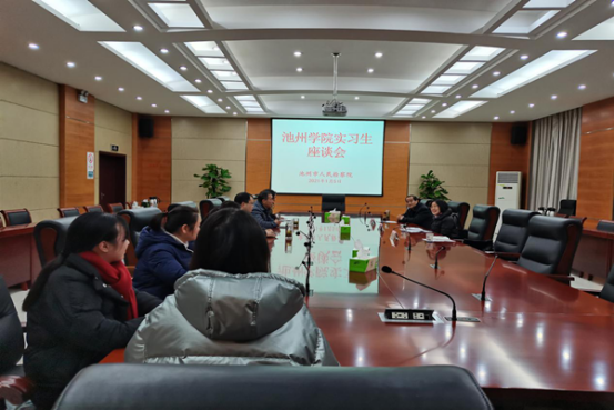 期间,叶三梅一行与实习单位领导、实习指导老师及实习学生进行了座谈,认真听取了各实习单位对学院教学工作改进的宝贵意见和建议,详细了解了实习生的实习与生活情况。座谈会上,叶三梅代表法学院感谢各单位对学院实践教学工作的支持,肯定了各实习单位在实习教学工作中对学生培养的贡献。同时,就专业培养模式、专业课程设置、实习安排等方面与实习单位进行了深入的交流与探讨,为进一步校地合作打下良好的基础。