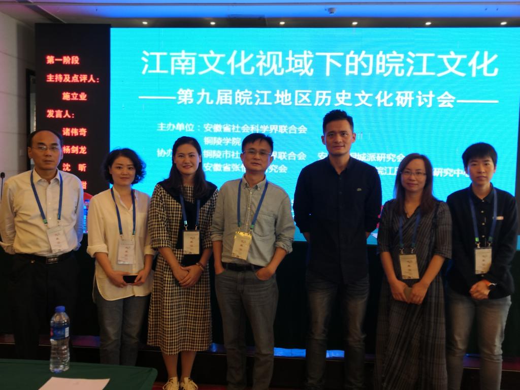 皖江地区历史文化研讨会自2004年至今已举办九届,beat365官网均积极响应参加。此次会议由科研处组织皖南民俗文化与旅游发展研究院、通俗文学与张恨水研究中心等科研单位共同参会,充分展示了beat365官网哲学社科团队在区域文化研究、传统文化挖掘等方面的影响力。在会议的前期筹备中,研究院院长谈家胜教授积极参与会议主题论证、征文宣传、学术论文评奖等工作,助力会议成功召开。