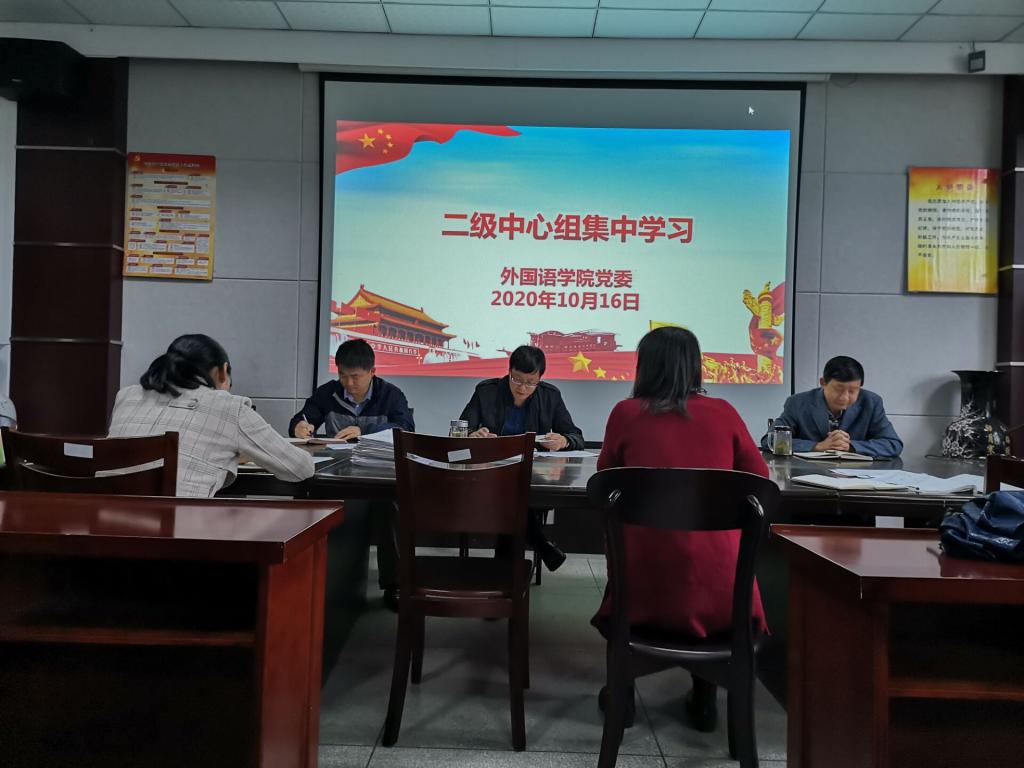 10月16日上午,外国语学院党委中心组举行会议,专题学习《习近平总书记教育重要论述讲义》和习近平总书记在深圳经济特区建立40周年庆祝大会上的重要讲话等内容。学院班子成员、科级干部和支部书记参加了此次集中学习。会议由外国语学院党委书记张乐民主持。