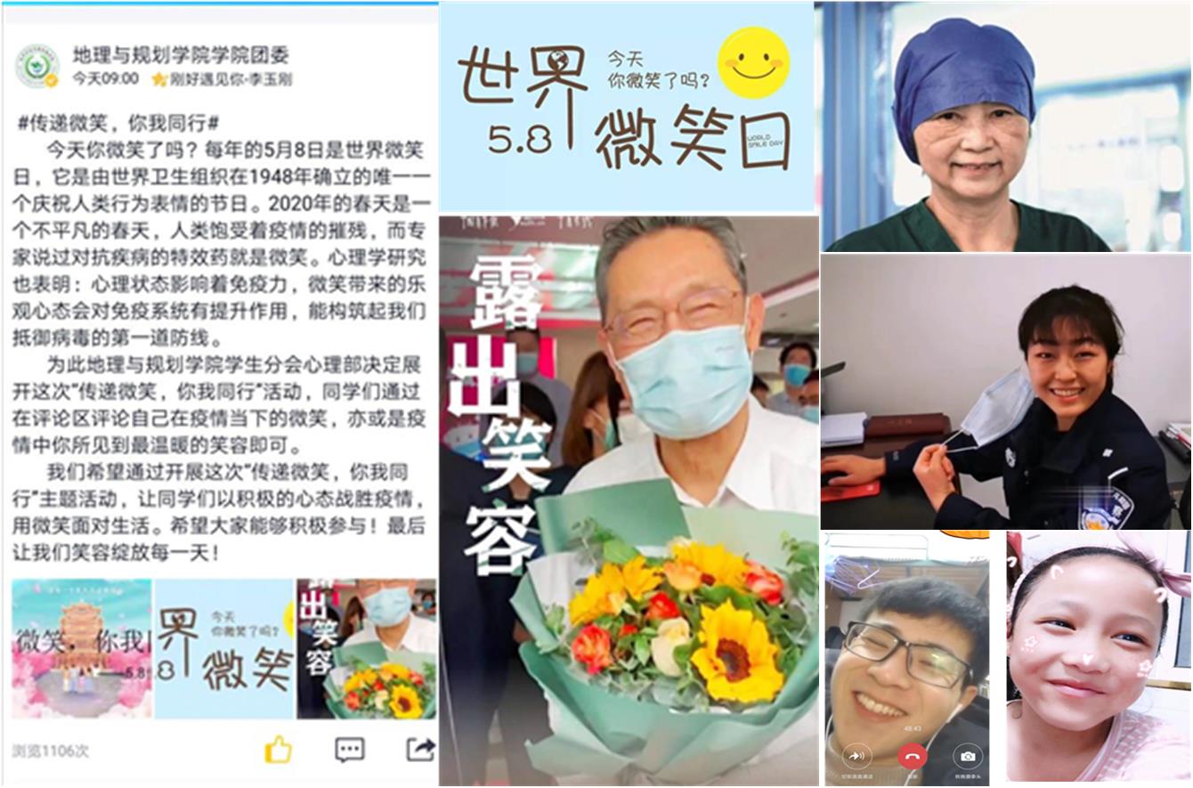每年的5月8日是世界微笑日,是由世界卫生组织在1948年确立的唯一一个庆祝人类行为表情的节日,希望通过微笑促进人类身心健康,同时在人与人之间传递愉悦与友善,增进社会和谐。2020年5月8日,是第72个世界微笑日。beat365在线唯一官网登录地理与规划学院举办了“世界微笑日——传递微笑,你我同行”主题活动,此次活动由地理与规划学院学生分会心理部承办。