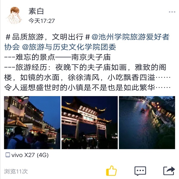 此次活动的主题是“品质旅游,文明出行”,活动由学院旅游爱好者协会承办。全校两百余名同学通过线上方式,以宣传海报、短视频等形式积极参与,宣传旅游知识,展示旅游生活,分享旅游收获,宣传绿色旅游、文明旅游理念。