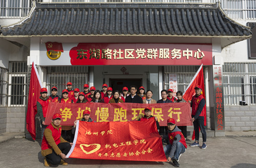 近日来,机电工程学院组织党员志愿者与东湖路社区联合开展了主题为“净城慢跑环保行”的系列志愿活动。在活动中志愿者头戴小红帽,手拿塑料袋,沿着活动路线慢跑,每遇到一处垃圾就停下脚步,捡拾并放入塑料袋中。在清理的同时,并对沿线的居民进行了引导宣传,提醒他们垃圾要实行袋装化,进行分类整理,投放到附近的垃圾箱中。活动现场,大家将慢跑与拾捡垃圾相结合,在拾捡垃圾中锻炼身体,在运动中塑造文明。参与的志愿者们纷纷表示,“池州Plogging” 是一项新型的运动,提倡在慢跑时,通过弓步或蹲起的方式拾起垃圾,它不仅简单有趣,又在改善自己健康的同时美化环境。
