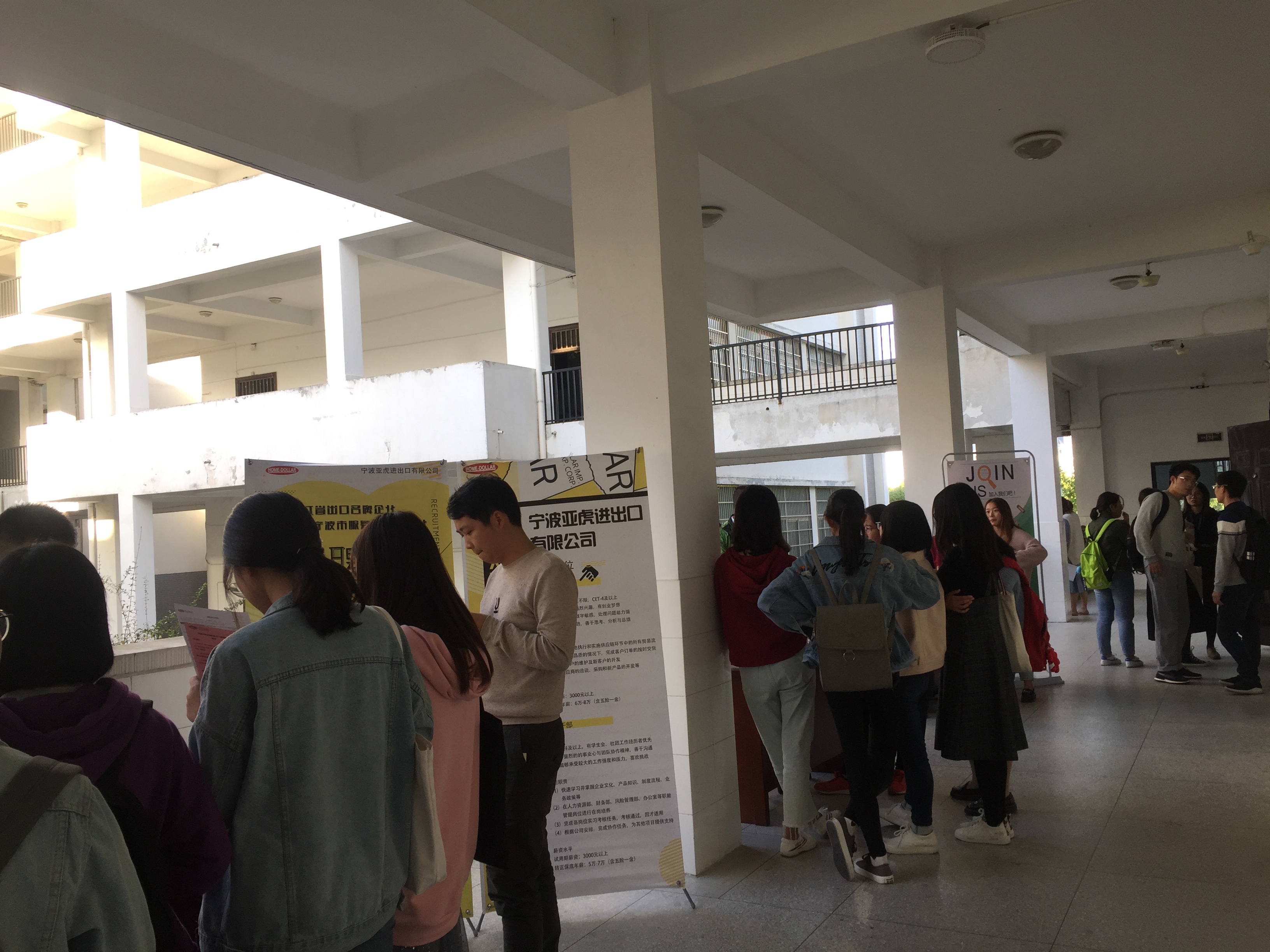 动员会后,池州佳音英语、宁波亚虎进出口有限公司和杭州携职就业创业学院进行了实习就业宣讲,并举行了专场招聘会。同学们就自己所关心的问题与企业进行了交流和沟通,并向有意向的企业递交了简历。整个招聘宣讲会现场气氛热烈,效果良好。