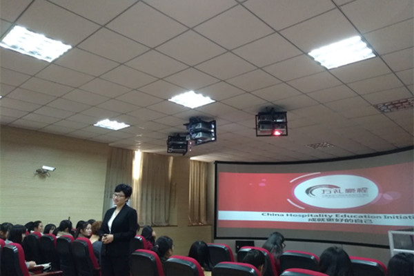 11月22日下午,旅游与历史文化学院在博雅南404导游模拟实训室举办了题为“成就最好的自己”的嘉宾讲座,此次活动由万豪基金会中国旅游教育合作项目发起,并选派了苏州尼盛万丽酒店人力资源副经理Amma Cheng女士担任主讲嘉宾。讲座由学院余菲菲老师主持,2017级酒店管理专业共100多名师生到场聆听。