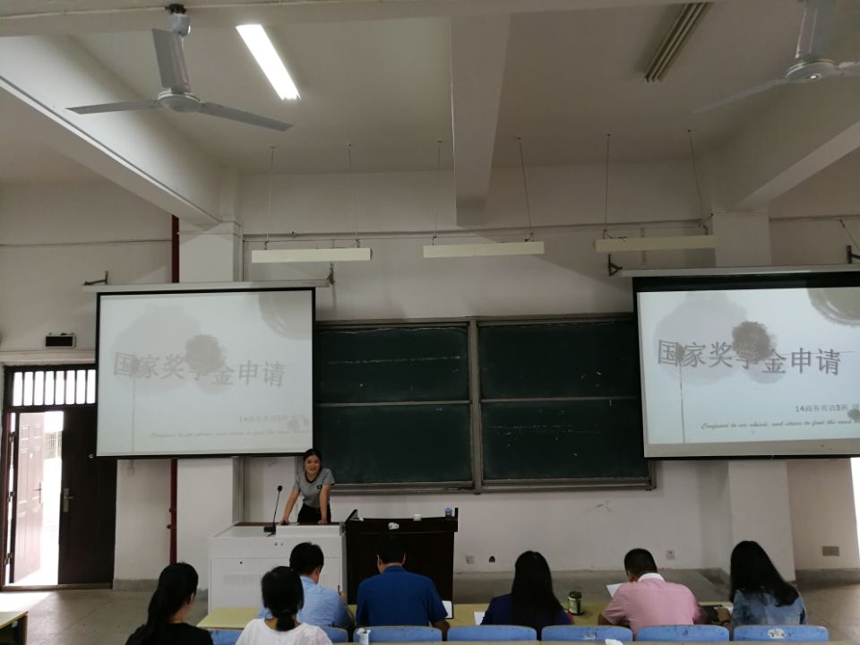 ppt展示环节,申报人通过自身的经历,从学习成绩、社会实践、参加活动、获奖情况以及综合素质等方面详细汇报了自己过去一年来的取得的成绩,表达了申请国家奖学金的决心。