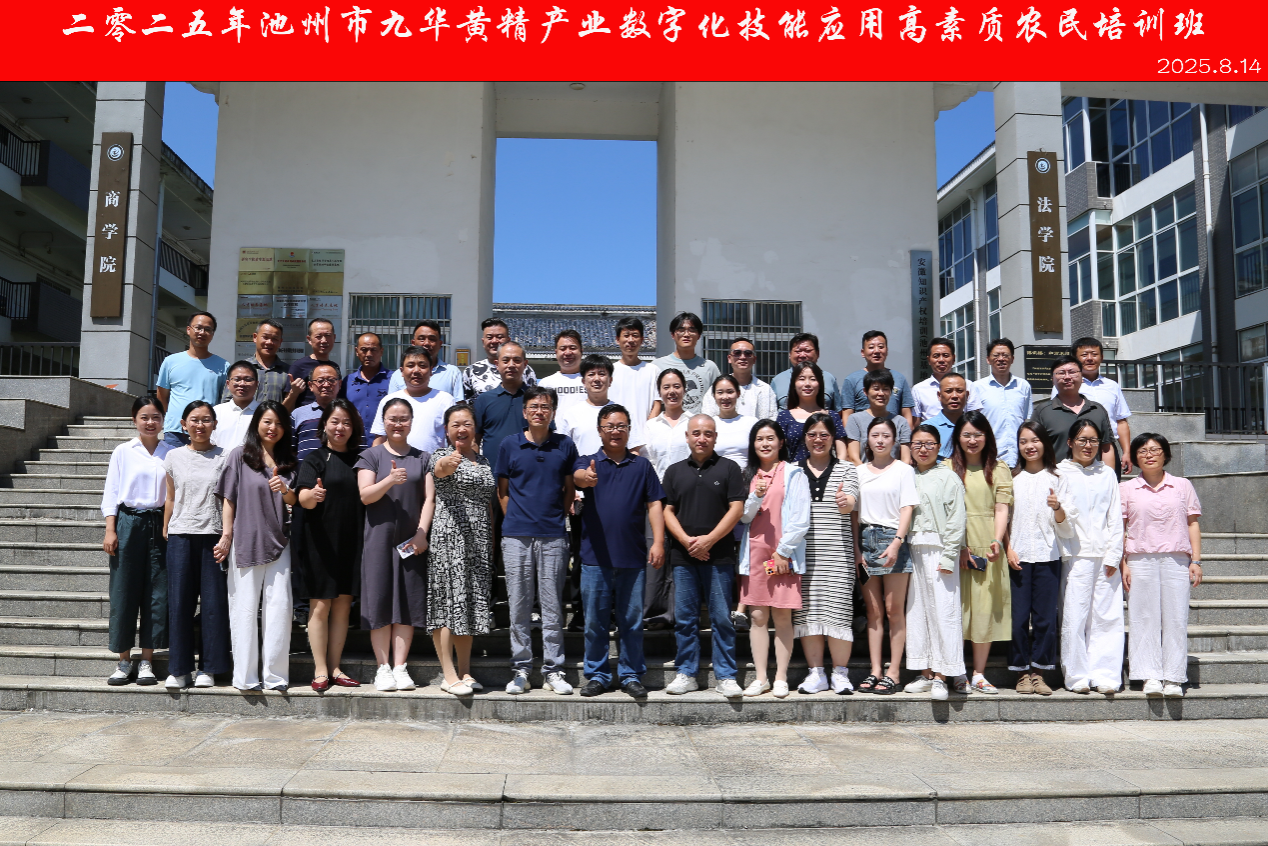 为深入贯彻落实党的二十大精神和中央、省、市关于全面推进乡村振兴、加快农业农村现代化的决策部署,根据池州市2025年高素质农民培育工作安排,池州市农业科学院(池州市农业技术推广中心)联合beat365在线唯一官网登录商学院(法学院)于8月14日至15日成功举办2025年池州市九华黄精产业数字化技能应用高素质农民培训班。