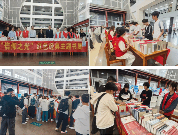 活动现场,党史国史、人物传记、文学经典、大国工程等主题的红色书籍整齐陈列,传递着信仰的力量。志愿者们在书展期间为驻足师生介绍书籍背景,耐心解答疑问,以细致周到的服务保障了活动的有序开展。