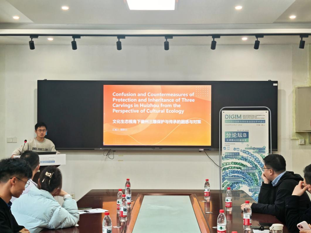 会议聚焦数字化转型与可持续发展,探讨数智驱动下的可持续设计、绿色转型与文旅升级等议题。顾彦力老师在分论坛作《文化生态视角下微州三雕保护与传承的困惑与对策》论文汇报。