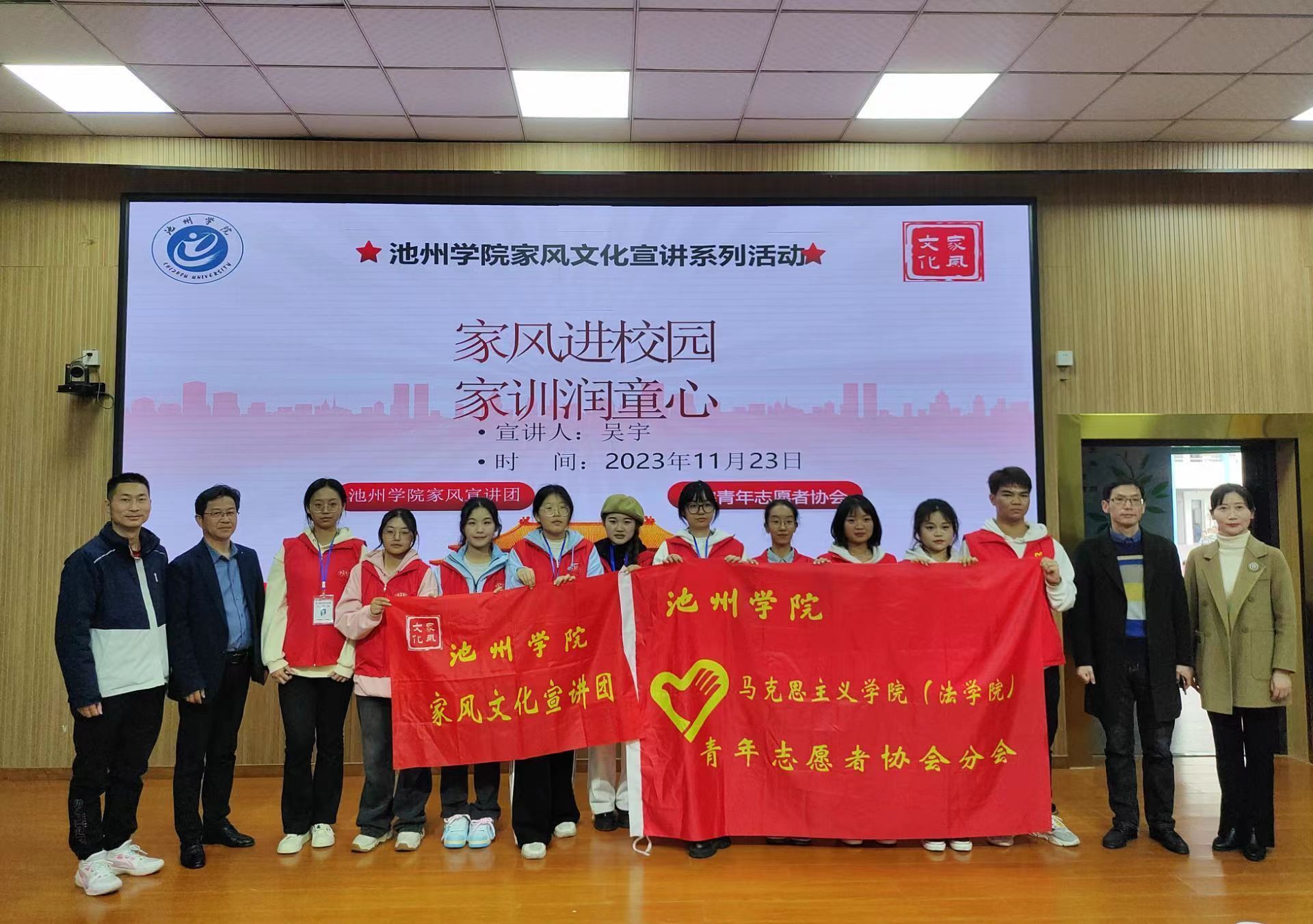 11月23日下午,在马克思主义学院副院长鲍红信、家风研究中心李志英老师的带领下,beat365在线唯一官网登录家风文化宣讲团和马克思主义学院青年志愿者协会赴池州市城关小学开展以“家风进校园,家训润童心”为主题的家风宣讲活动。城关小学师生参加此次活动。