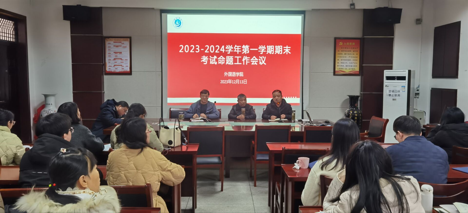 为深入推进英语师范专业认证工作,进一步规范考试命题,12月13日下午,外国语学院在院会议室举行2023-2024学年第一学期期末考试命题工作会议,学院全体教师参加会议。会议由外国语学院院长余义兵主持。