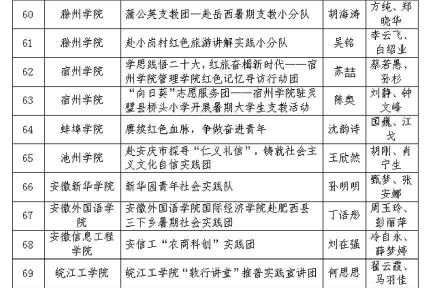 经资格审查、专家评选、结果复审等环节,安徽学联公布了2023年安徽省大中专学生志愿者暑期文化科技卫生“三下乡”社会实践活动获奖名单,商学院王欣然团队“赴安庆市探寻‘仁义礼信’,铸就社会主义文化自信实践团”(指导老师:胡刚,肖宁生)被评为2023年“三下乡”社会实践活动优秀实践团队。