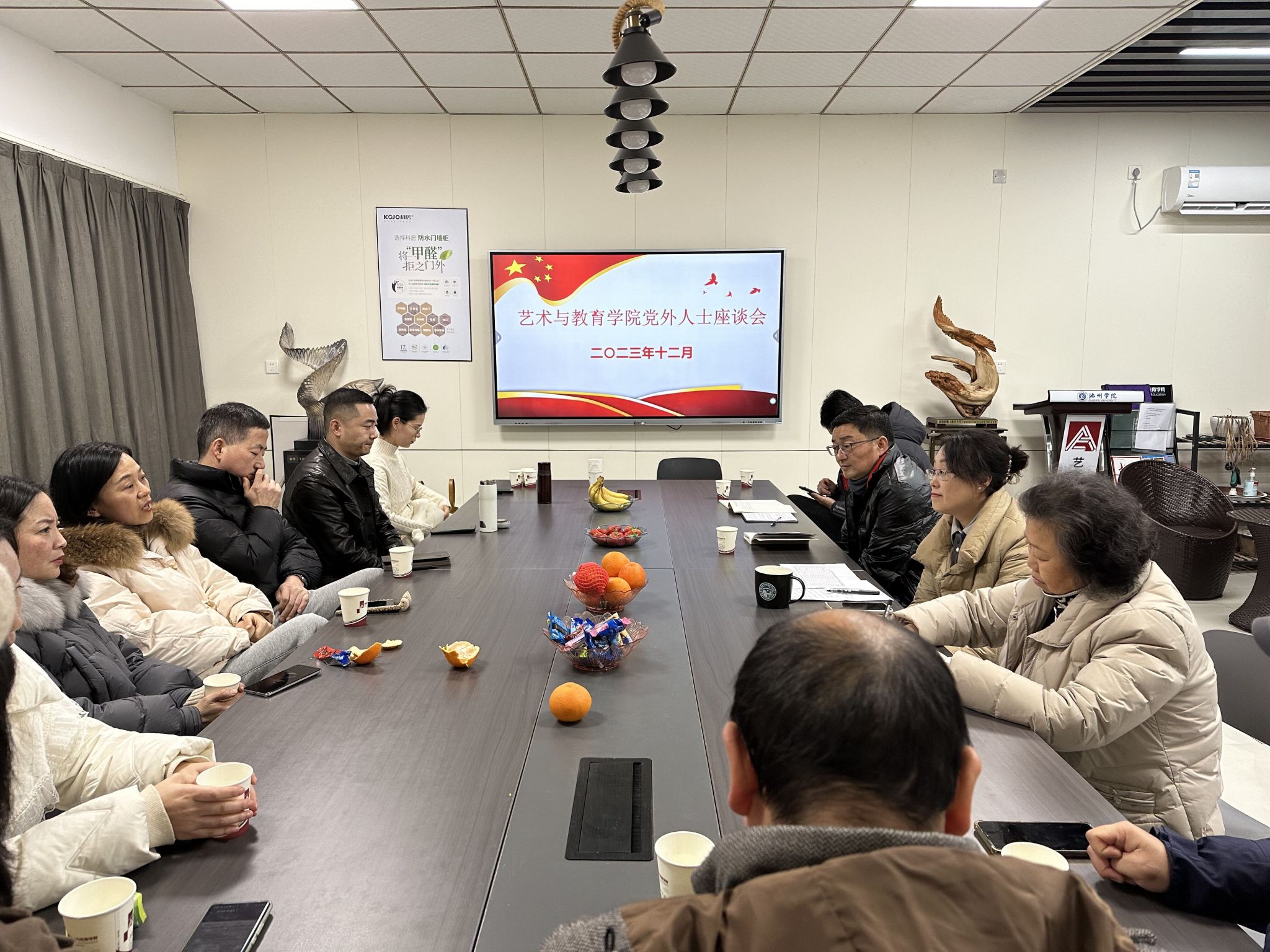 12月15日,艺术与教育学院在艺术楼三楼会议室召开了2023年度党外人士座谈会,学院无党派人士和民主党派人士12人参加了会议。党委书记杨静主持会议。