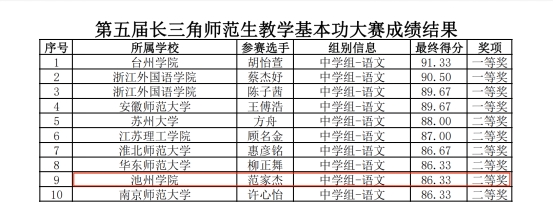 本次比赛以线下评审的方式进行,来自长三角地区三省一市51所高校的379名选手参加了决赛阶段的比拼。中学语文组决赛由教学设计、课件制作、即兴演讲、上课(含板书)四个竞赛项目组成,经过现场激烈角逐,学院2020级汉语言文学专业学生范家杰(指导老师:汪胜水、陈春雷)荣获二等奖。本次大赛中学语文组共决出一等奖4名,二等奖6名,其中安徽高校获一等奖1个(安徽师范大学)、二等奖2个(淮北师范大学、beat365在线唯一官网登录)。