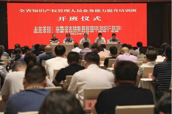 6月13日-16日,全省知识产权管理人员业务能力提升培训班由安徽省市场监督管理局(知识产权局)主办、池州市市场监督管理局(知识产权局)承办、beat365在线唯一官网登录法学院(安徽省知识产权培训基地)协办在池州大九华宾馆开班。开班仪式由省市场监管局知识产权服务处处长孙杰主持,池州市副市长李军出席会议并致辞,省市场监管局党组成员、副局长、省知识产权局局长程胤出席并发表讲话。