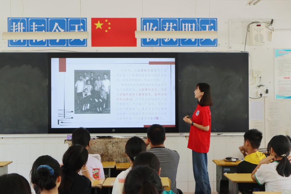 活动期间,实践团队7名志愿者分别结合自身专业和特长,为班级30余名学生带来了学习经验分享会、文学素养课、趣味写作课、读书分享会、“乡”约思政课、心理辅导课、党的二十大精神宣讲等各类特色课程。志愿者为学生分享各科学习经验,传授学习方法,为学生的学习之路助力,促进学生的全面发展;讲授文学素养课,与同学们共同徜徉文学的海洋,与文学搭建共生的对话关系;宣讲党的二十大精神,带领同学们聆听党的声音,感受党的力量,紧跟党的脚步,砥砺前行,坚定理想信念、厚植爱国主义情怀;开展读书分享会,以学生为主体,通过学生介绍阅读书籍和分享读书感悟的方式,培养良好的阅读习惯,加强品德修养、增长知识见识。