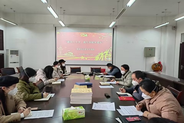 喜庆二十大、我与学院共成长:为推动党的二十大精神在青年教师中落地生根、见行见效,12月15日,学院召开“喜庆二十大,我与学院共成长”主题交流发言会,顾寒月、汪菁菁等4位青年教师代表联系自身工作实际,以昂扬的精神、生动的语言、充实的内容、深刻的领悟,交流了学习党的二十大精神心得体会,引起了广大青年教师内心深处的强烈共鸣。