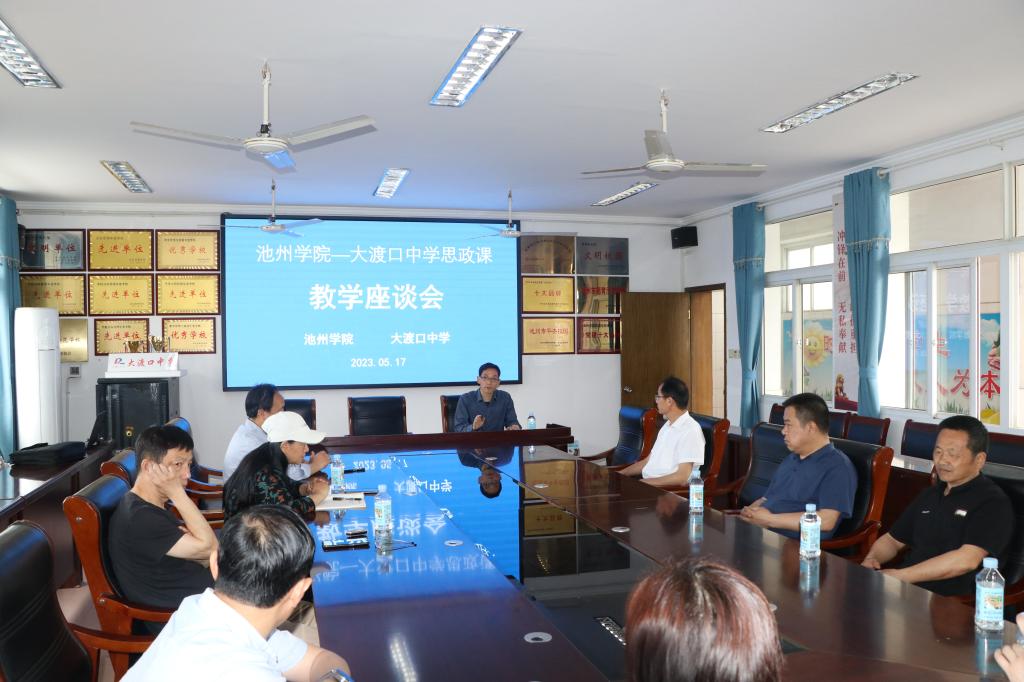5月17日下午,beat365在线唯一官网登录——大渡口中学思政课教学座谈会在东至县大渡口中学召开。beat365官网马克思主义学院教师代表、大渡口中学校领导和思政课教师等十余人参加座谈会。