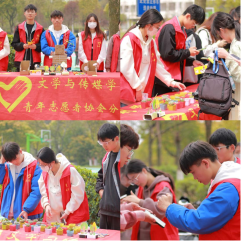 3月30日,组织志愿者于校园一二食堂门口开展“万物复苏,‘植’因你绿”绿色低碳活动,鼓励同学们变废为宝地手工DIY作品换取精美盆栽,发扬关爱自然、环保生活、节约资源的绿色低碳发展理念。