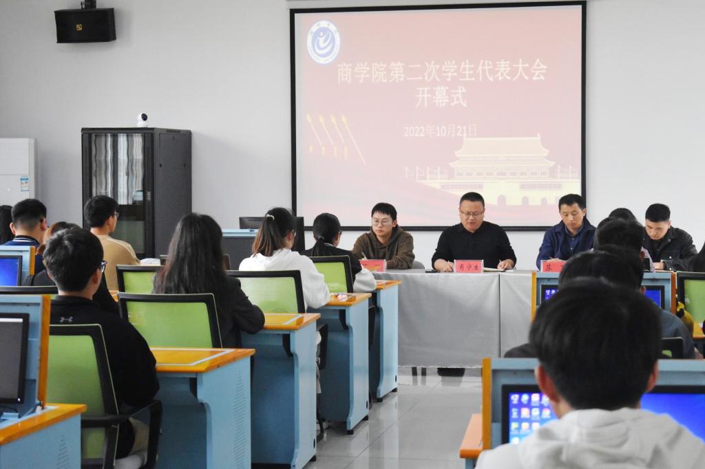 10月21日下午,商学院第二次学生代表大会在博识北303教室召开。院党委副书记肖宁生,院党办、学工办、团委负责同志及全院65名学生代表参加了会议。