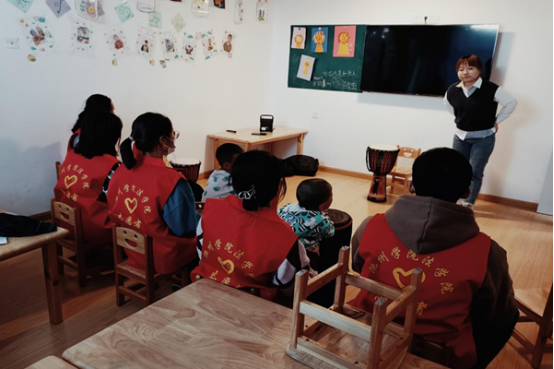 在活动中,志愿者们协助星星树康复中心的老师们开展教学活动,耐心的陪伴自闭症孩子们进行日常学习,了解他们的生活、心理和学习方式,让孩子们感受到尊重、关心和爱护。