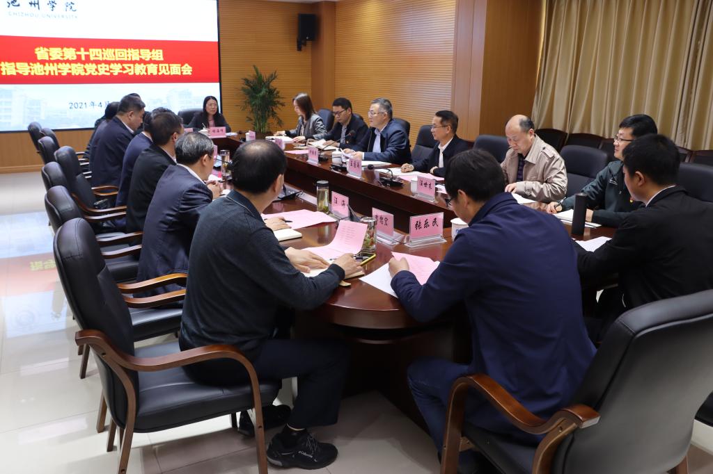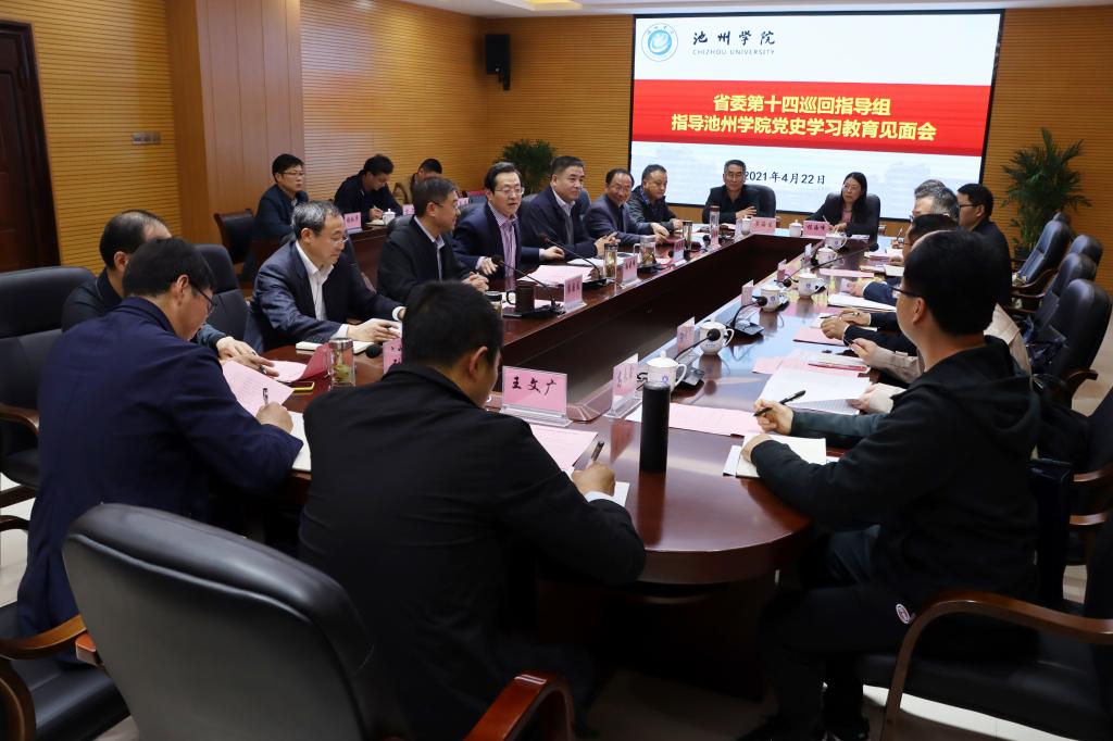 根据省委党史学习教育统一部署安排,4月22日,党史学习教育省委第十四巡回指导组深入beat365官网督查指导党史学习教育开展情况。安庆师范大学党委书记、指导组组长许继荣出席会议并讲话。校党委书记孙晓峰主持会议。第十四巡回指导组副组长王国雨及指导组全体成员,校领导柳友荣、崔国发、王延寿、汪海、阳光宁、汪贤才出席会议。