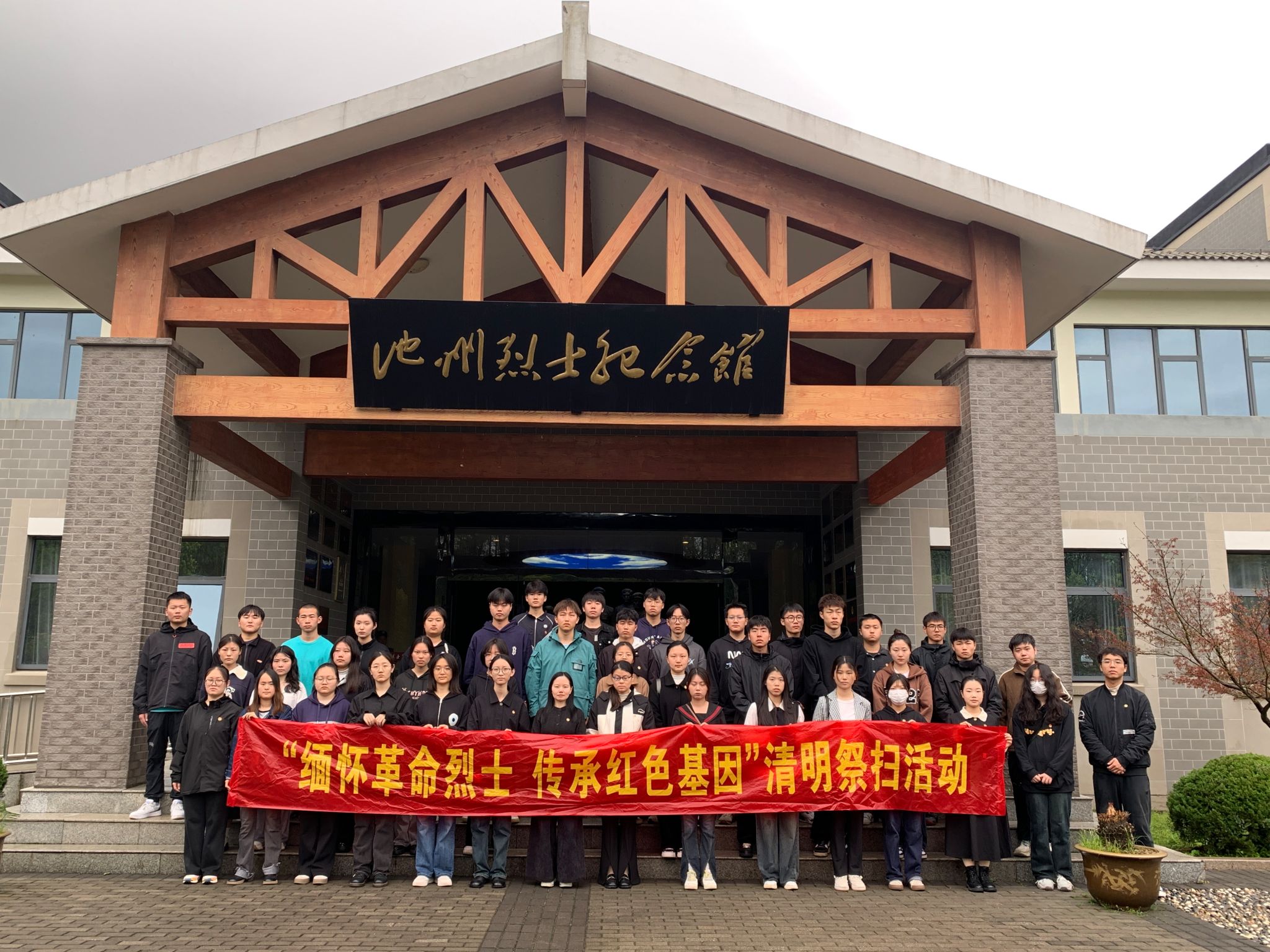 4月2日上午,校团学骨干、青马班学员和退伍大学生共60余名师生代表前往池州市烈士陵园开展“缅怀革命烈士 传承红色基因”清明祭扫活动。在庄严肃穆的烈士纪念碑前,全体师生肃立默哀,敬献鲜花,向革命先烈们表达缅怀和哀思。