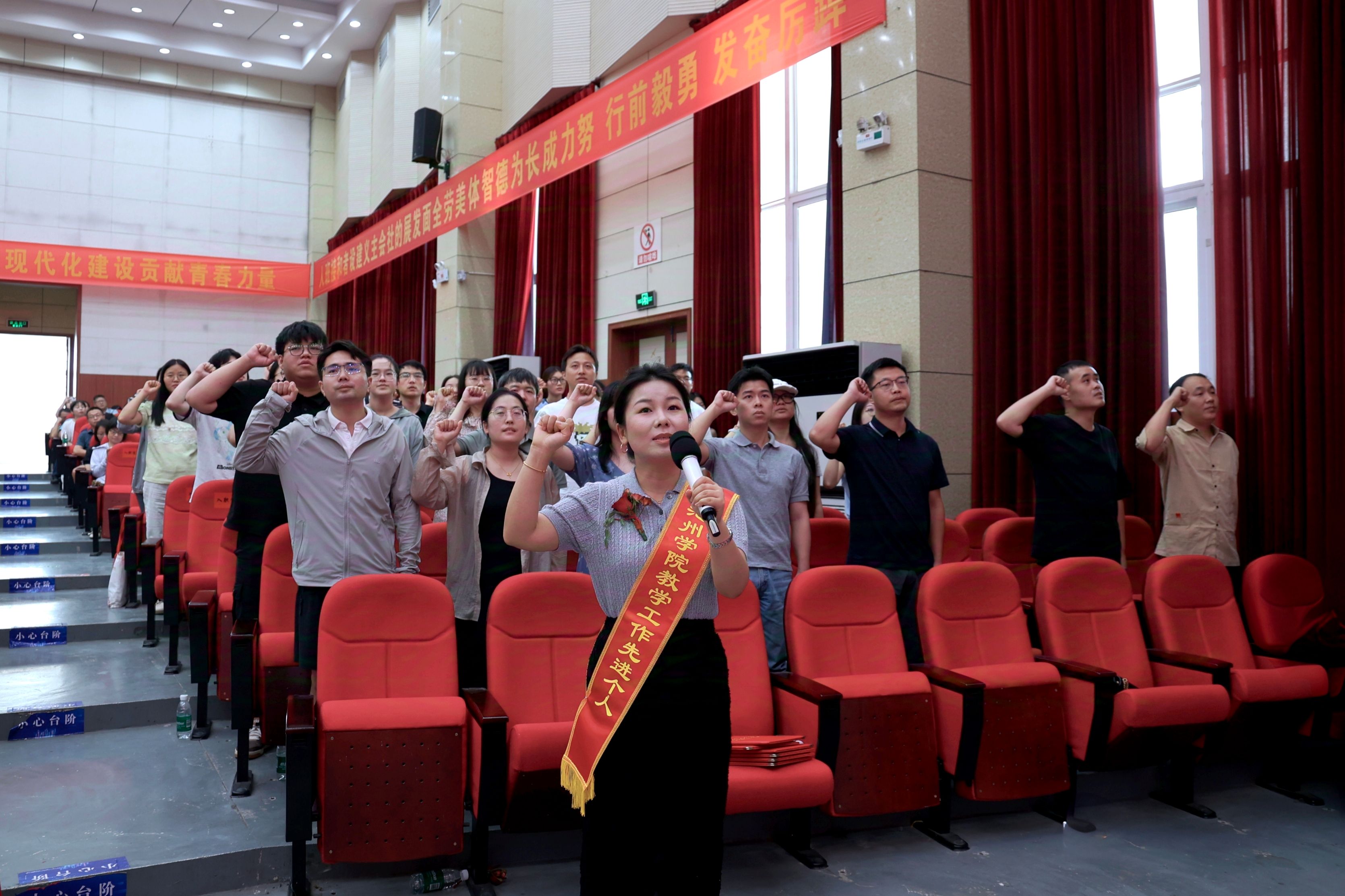 在入职宣誓环节,2025年新进教师代表庄严宣誓,表达了要坚定投身教育事业、践行“为党育人、为国育才”的初心使命。