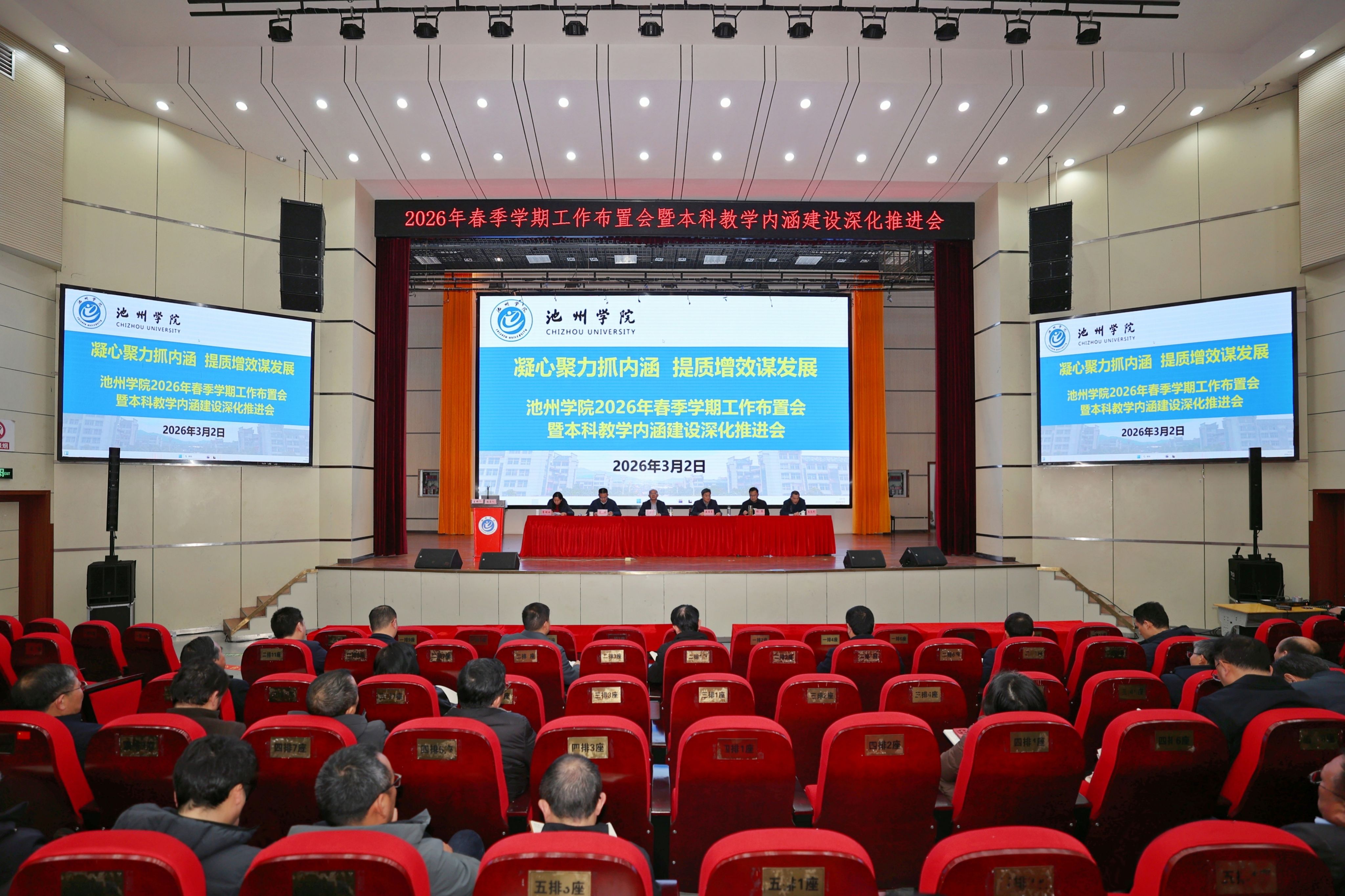 3月2日,beat365在线唯一官网登录召开2026年春季学期工作布置会暨本科教学内涵建设深化推进会。大会以“凝心聚力抓内涵,提质增效谋发展”为主题,集思广益、群策群力,旨在认真落实立德树人根本任务,持续深化教育教学改革,夯实本科教学基础,凝练办学特色,切实提高人才培养质量,奋力开创学校高质量发展新局面。校领导王先柱、盛国星、吕刚、张赛、李明玲、朱为民等出席会议。