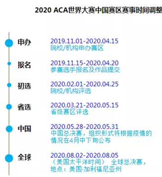 根据ACA大赛官网3月9日发出的“2020 ACA世界大赛中国赛区赛事时间调整”的通知,betway西汉姆联官网第一届ACA竞赛定于4月22日下午进行校赛评选,请各参赛学院通知本院学生务必在4月20日前将参赛作品提交至官网。